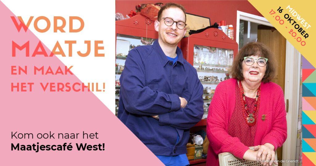 Kom op donderdag 16 oktober van 17.00 tot 20.00 uur naar het Maatjescafé in MidWest (Amsterdam) en ontdek wat jij kunt doen als vrijwillig maatje. Met live muziek van de Belleman Brothers!
